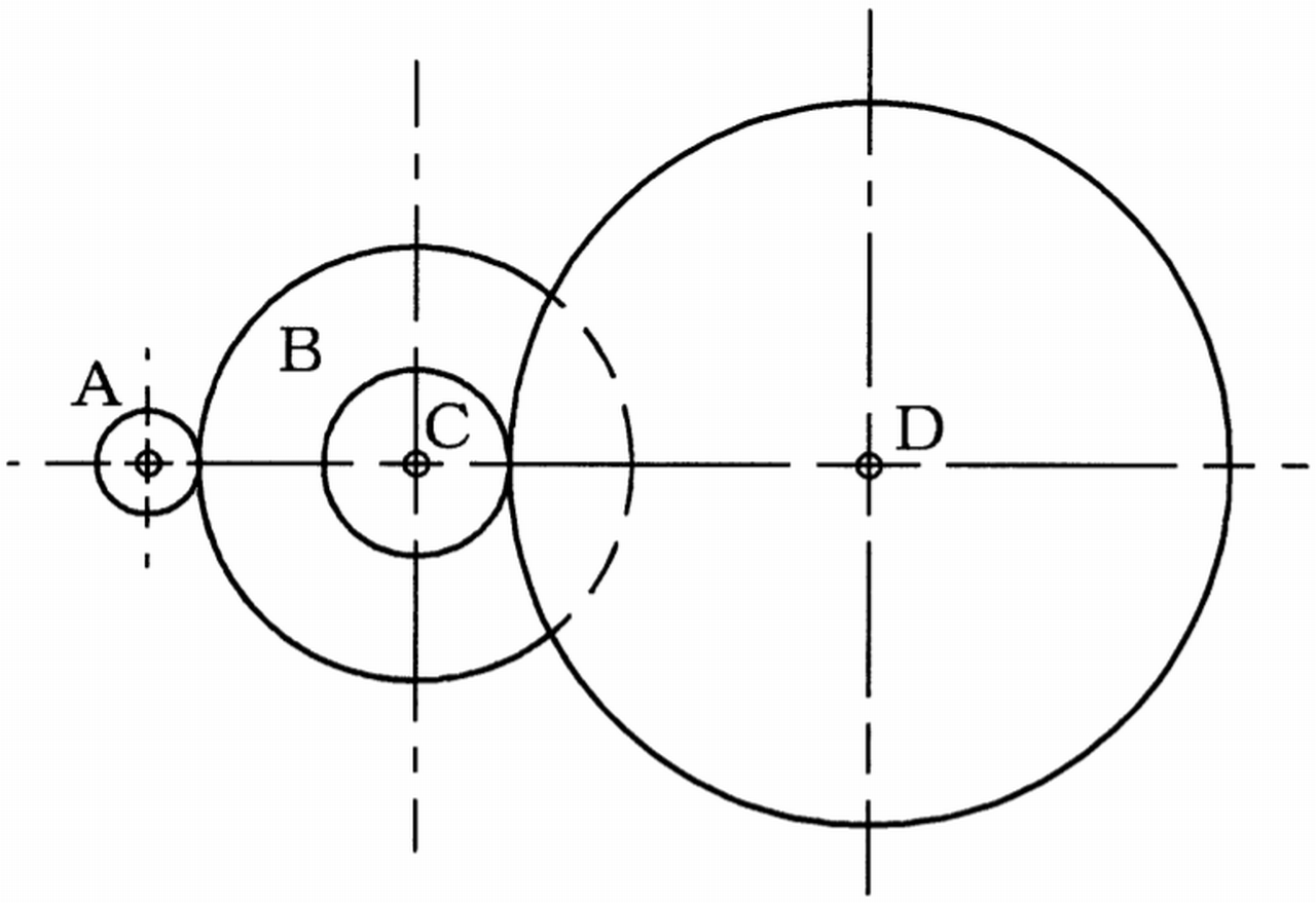 ただし、歯車A、B、C及びDの歯数は、それぞれ15、60、24及び96とし、BとCの歯車は同じ軸に固定されているものとする。